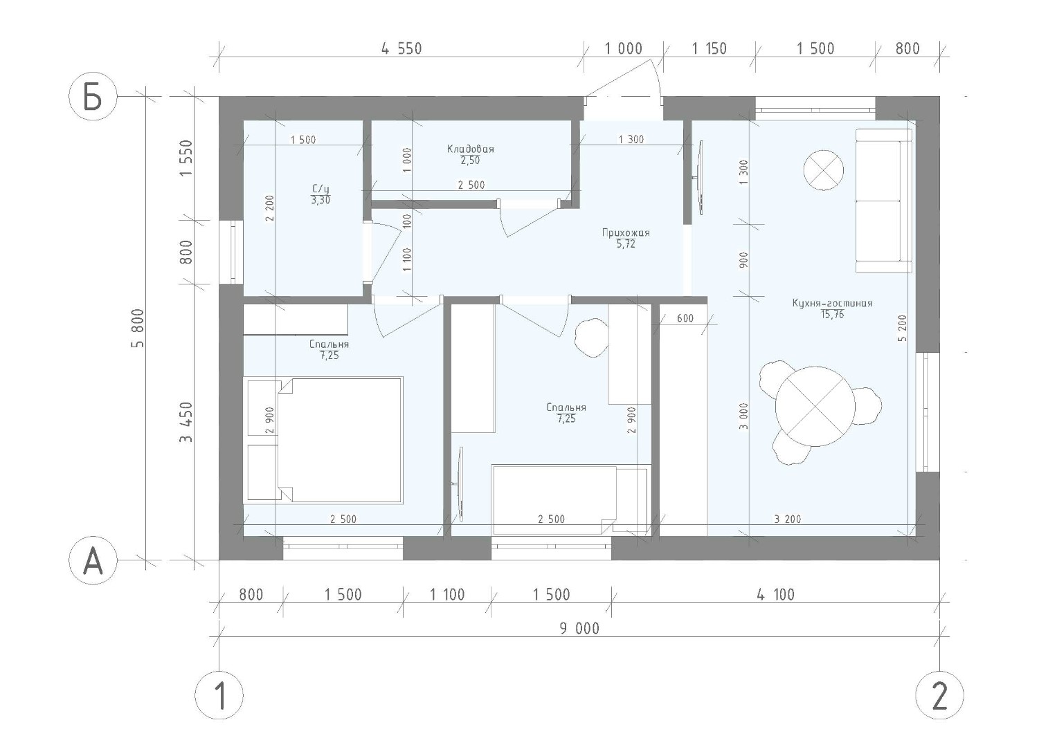 Площадь: 52,2 м